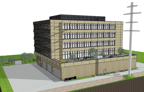 Visualisierung des neuen Gebäudes inkl. Mietflächen in den OG.